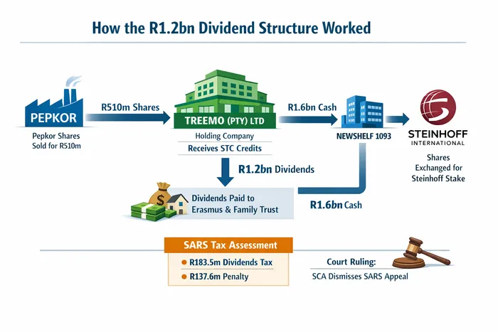 The Supreme Court of Appeal has dismissed an attempt by the Commissioner of the South African Revenue Service (SARS) to revive a R183.5 million tax claim linked to a complex series of share transactions tied to the Steinhoff–Pepkor deal, after finding the tax authority unlawfully changed the basis of its case during litigation.