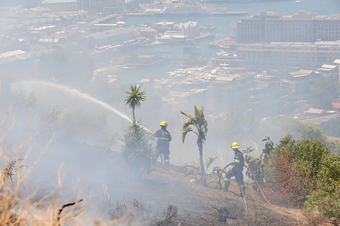 Fire-fighters tries to put out a blaze on Signal Hill. l LEON LESTRADE/FILE