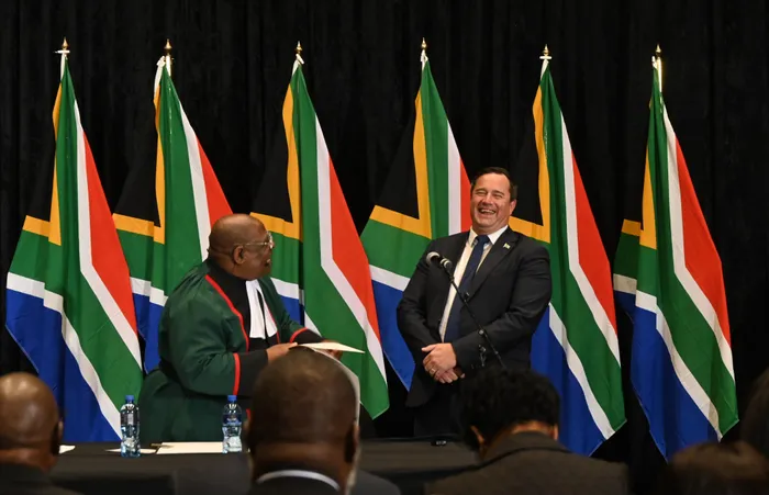 Minister John Steenhuisen during the Swearing-in Ceremony with Chief Justice Raymond Zondo. Picture: Ayanda Ndamane/ Independent Newspapers
