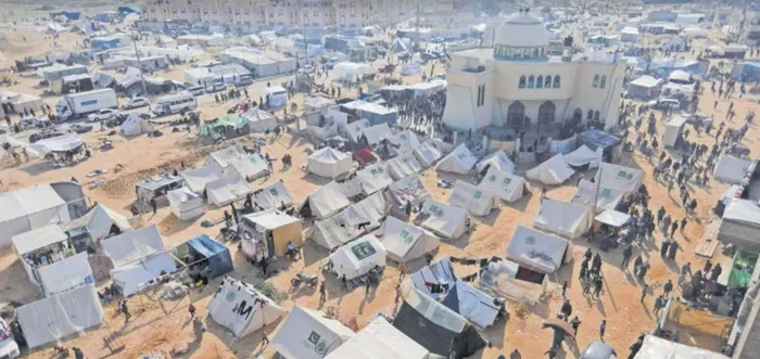 Displaced Palestinians, who fled their houses due to Israeli strikes, shelter in a camp in Rafah amid the ongoing conflict between Israel and Palestinian Islamist group Hamas, in the southern Gaza Strip on Wednesday. Picture: Reuters
