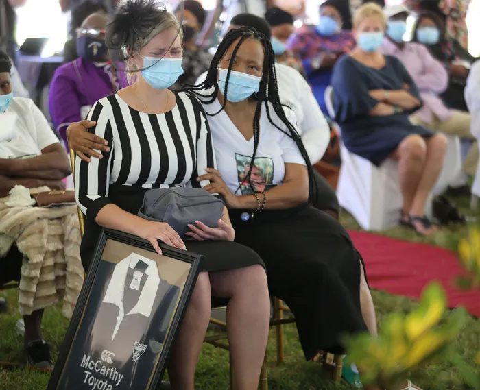 Lindani Myeni’s wife Lindsay at the slain former KZN rugby player’s memorial service. The 29-year-old former rugby player was shot dead by Honolulu police officers on April 14.Picture: Nqobile Mbonambi/African News Agency(ANA)