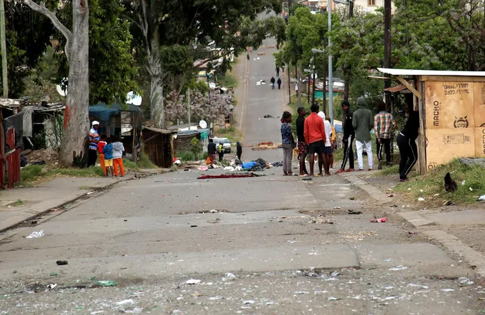KwaMashu Hostel residents barricaded the road with broken bottles and rubble, demanding that their councillor organise buses to Prince Mangosuthu Buthelezi's funeral in Ulundi. Picture: Tumi Pakkies/African News Agency (ANA)