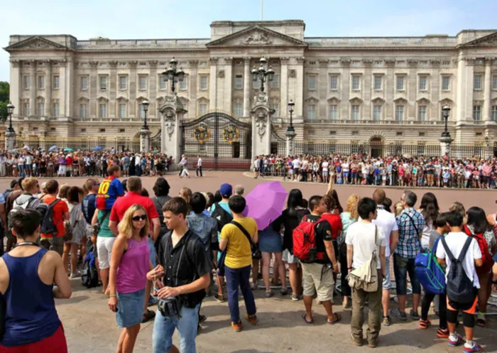 Tourists gather outside Buckingham Palace, where the Queen summoned a cyber expert to enhance the royals; online security. Tourists gather outside Buckingham Palace, where the Queen summoned a cyber expert to enhance the royals; online security.