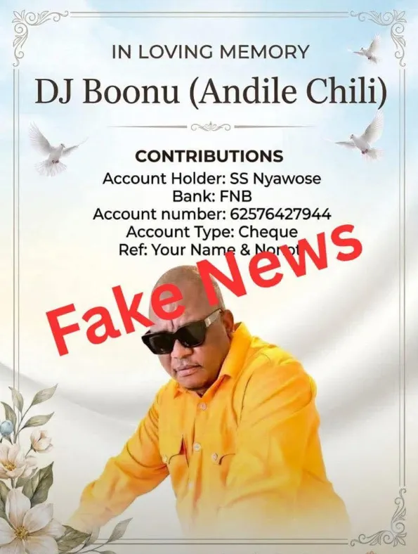 On Friday, Sandile Makhoba, a longtime friend of DJ Boonu and former Independent Newspapers photographer, shared one of the fake posts to alert the public, stressing that the family is not requesting any financial contributions.