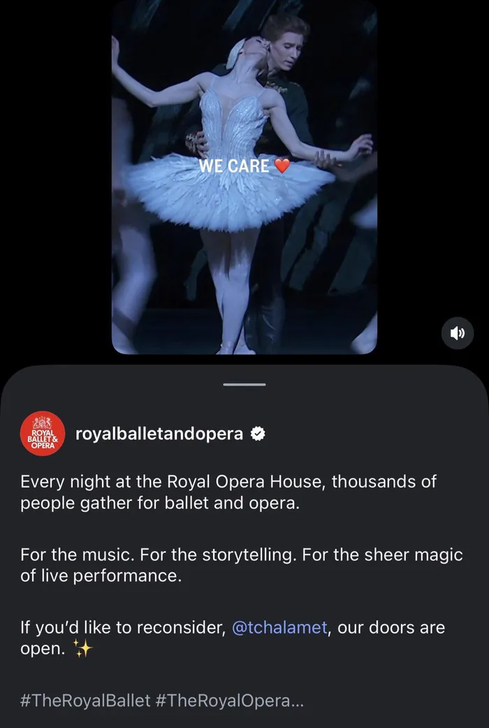 London’s Royal Ballet and Opera posted a video showing packed audiences, subtly reminding viewers that the art form Chalamet dismissed is still drawing thousands of people every night.