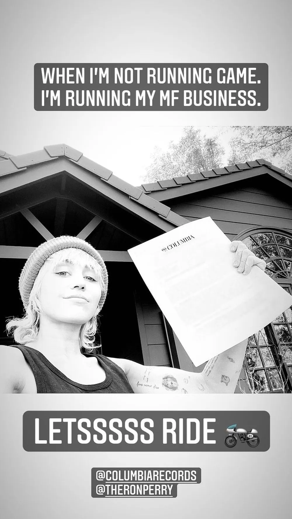 Alongside a snap of her holding her paper contract in hand, she wrote on her Instagram Story: “WHEN IM NOT RUNNING GAME. IM RUNNING MY MF BUSINESS. LET’S RIDE. (sic)"