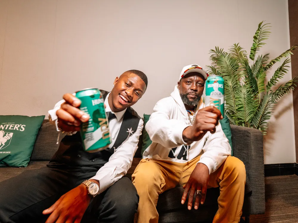 This past weekend, the brand celebrated the launch of the limited edition 440ml Hunter’s Refresh Cans which have the artists’ faces, with a party where the two showcased their skills with special live performances accompanied by a 24-piece band put together by Kasivan Naidoo.
