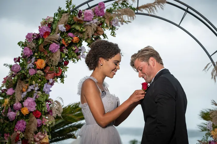Qiniso Van Damme hands Gareth Ehret the final rose in ’The Bachelorette SA’. Picture: Supplied