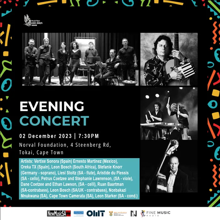 Check out the festival programme: http://www.worldnewmusicdays.africa/festival-programme.html