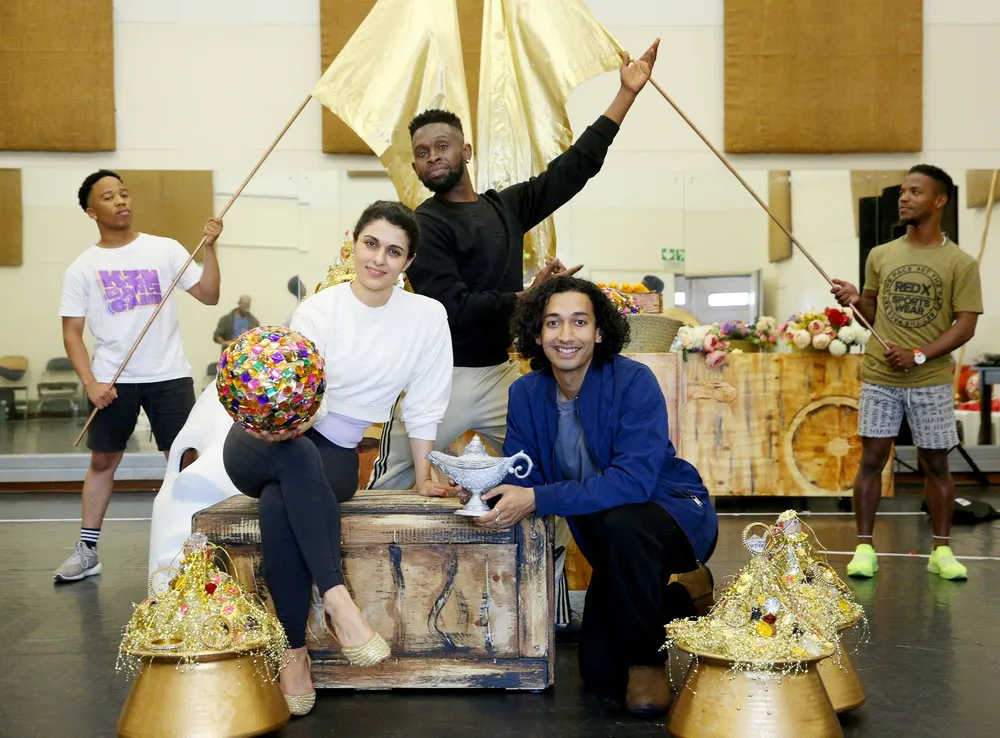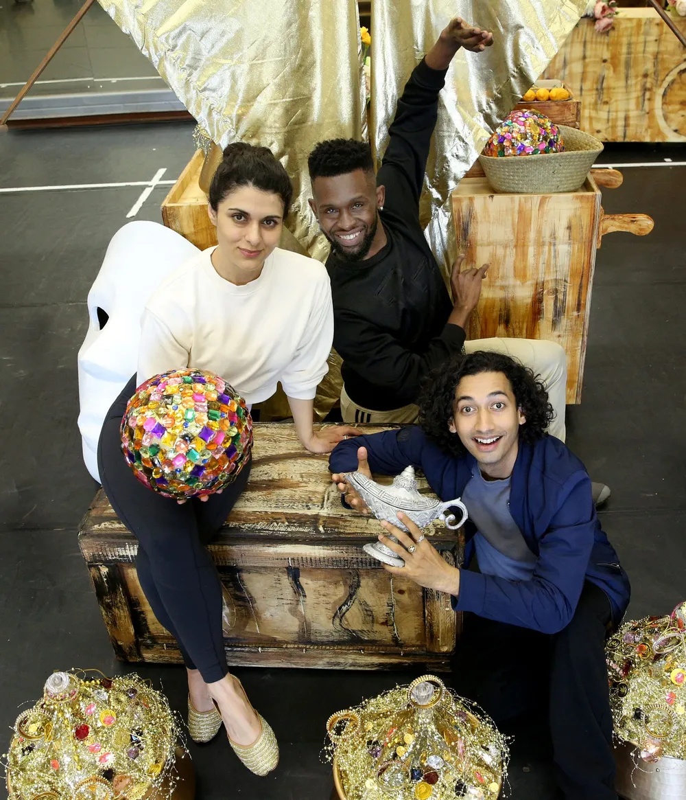 Aladdin opens at the Globe at Suncoast this week. In rehearsal are Vash Singh as Aladdin, Tshediso Kabulu as the Genie and Yasmin Hankel as Princess Almas. Picture: Shelley Kjonstad/African News Agency (ANA)