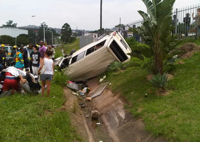 Police spokesman Captain Thulani Zwane said the taxi allegedly encroached into the path of the travelling bakkie and the two collided along Otto Volek road at around 9am.