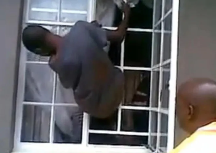 A Burglar getting through burglar bars posted on YOUTUBE A Burglar getting through burglar bars posted on YOUTUBE