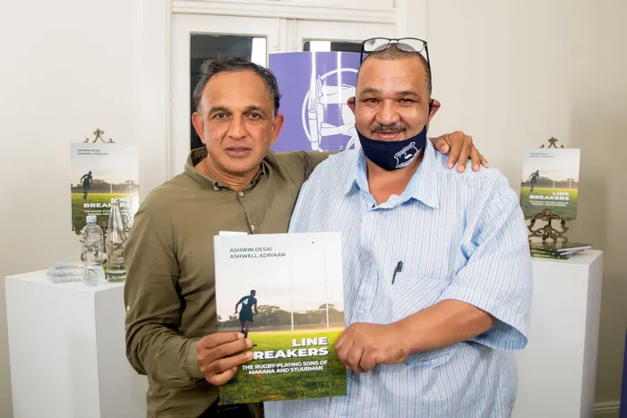 Authors Professor Ashwin Desai and Ashwell Adriaan at the launch of their of book Line Breakers: The rugby playing sons of Makana and Stuurman