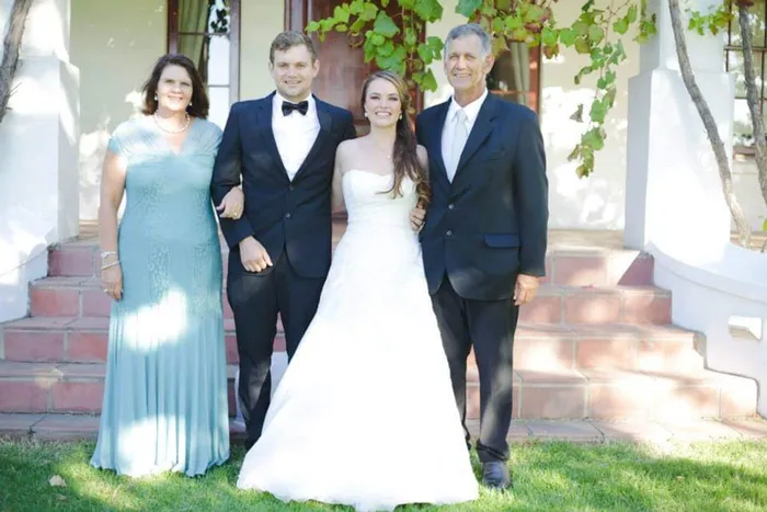 Vida and Glen Rafferty on the day of Nathan and Tamsyn’s wedding. Picture: Supplied