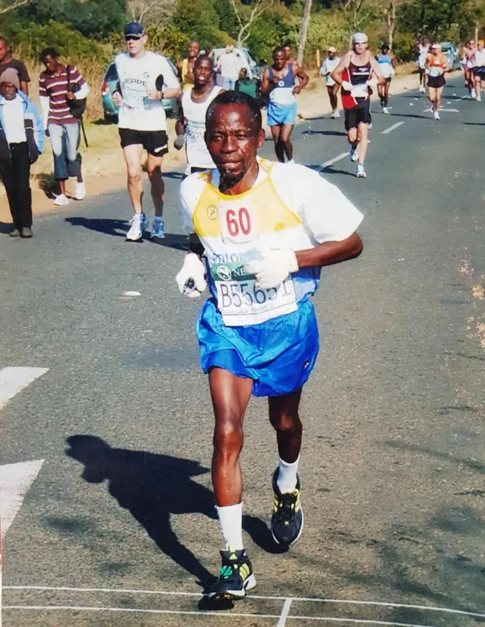 Oldest runner in the 2023 Comrades Marathon Maros Johannes Mosehla participating in a previous Comrades