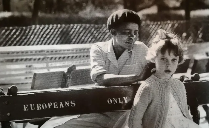 A photo of "Nanny and Child, Johannesburg" taken by Peter Magubane in 1958 shows a tender moment between a black nanny and a white child de-humanised by the "Europeans Only" sign. The photo is featured in Simon A. Clarke's new book Life Itself: Photography and South Africa.