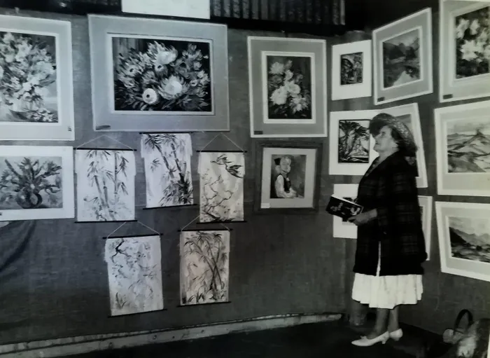 Perla Siedle Gibson at an exhibition of her paintings at the Zululand Show, June 1968. She told a reporter, "I love life. I love people. I shall go on singing."