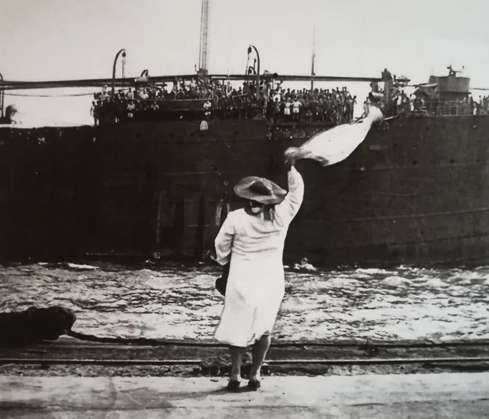 One Durban woman who made a unique contribution during the second world war was Perla Siedle Gibson. From 1940 until the war’s end, she stood on North Pier singing to every troopship sailing in or out of Durban. It rose from a chance request. After South Africa entered the war, the Seamen’s Institute opened a canteen at Congella which was managed by Perla’s mother, Amelia Siedle. Wearing a white dress, Perla helped serve refreshments to departing servicemen.