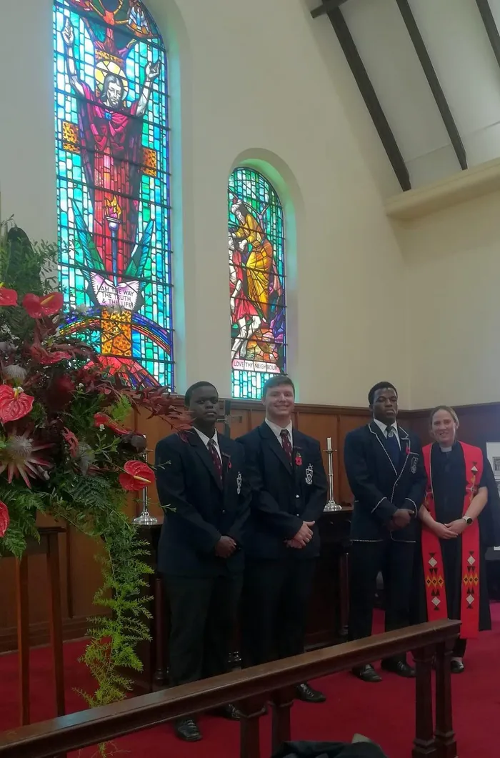 St Henry’s and Kearsney both held church services attended by all their pupils, except the matrics. At Kearsney, the school colour was carried into the chapel by Luke Faure, the Head of School for 2026, with an old boy, Wray Radford (1989), bearing the Roll of Honour.