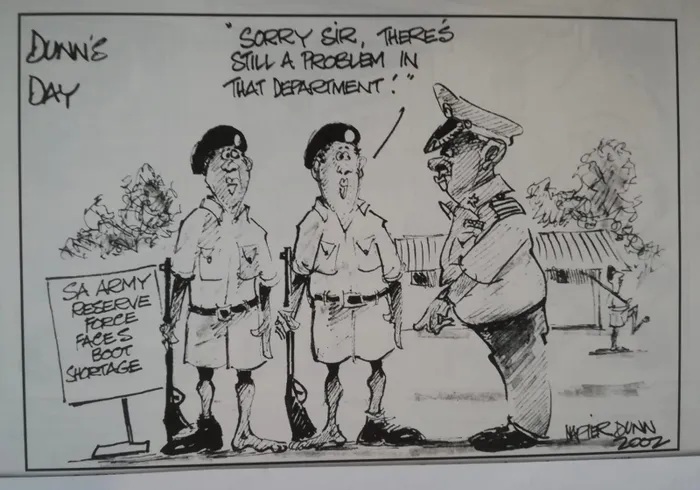 This cartoon on the lack of funding in the South African National Defence Force (SANDF) appeared in The Mercury on January 18, 2002. More than two decades later, Dunn's cartoon remains just as relevant.