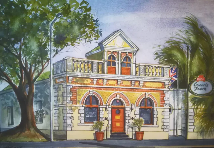 Queen's Tavern when it was still a pub and restaurant in the 1990s. Across the road from Newspaper House, it was a popular watering hole for journalists. The building is today painted grey and white.