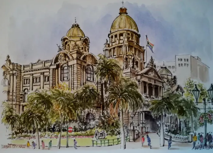 For over a decade, Napier Dunn was the cartoonist at the Mercury. In the late 1990s, he also occasionally painted depictions of historic buildings and scenes of Durban. These were published in the Mercury from time to time, to much acclaim.