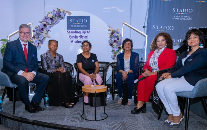 CEO of Stadio Dr Stan du Plessis, Dr Leah Shibambo, a former deputy national police commissioner; Anne Rajcoomar of the South African Depression and Anxiety Group (SADAG); Navi Pillay; Sunday Tribune news editor Annie Dorasamy and Stadio's chief academic officer Professor Dhivya Singh were part of a panel discussion on Gender Based Violence