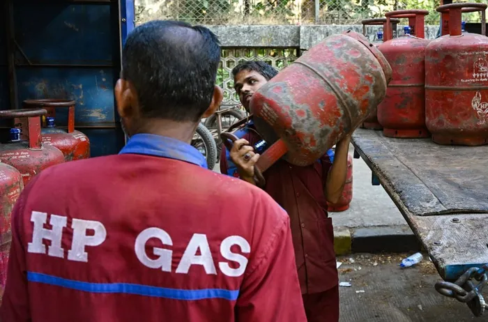 A delivery staff unloads liquefied petroleum gas (LPG) cylinders from a truck at a distribution point in Mumbai on March 10, 2026. Oil prices tanked and equities rallied on March 10, following a wild day of swings that came after Donald Trump said the US-Israel war on Iran would be ending earlier than thought. T