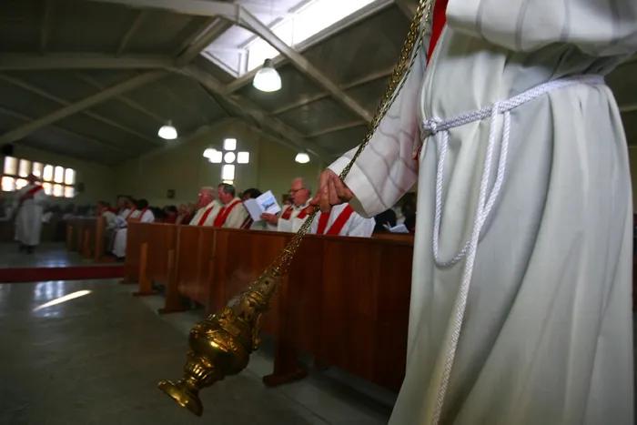A deacon distributes incense during the blessing and consecration of Saints Cosmas and Damian Catholic Church in Cosmo City north of Johannesburg. The burning of incense, a resin-based liturgical tool representing prayers rising to heaven, not too dissimilar to how some African communities use impepho (African sage/Helichrysum) for spiritual cleansing and communicating.