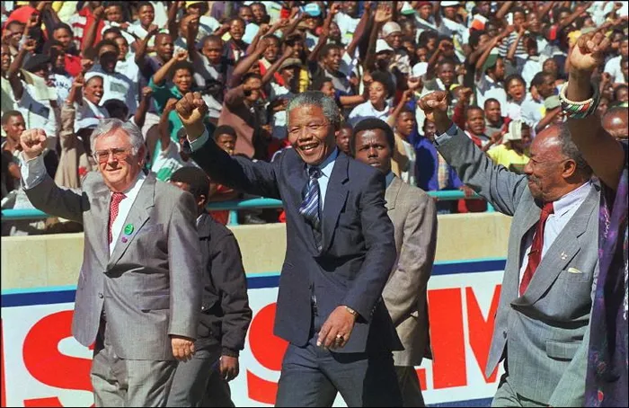 (From left) South African Communist Party (SACP) leader Joe Slovo, African National Congress President Nelson Mandela and ANC Secretary-General Alfred Nzo salute supporters at the first rally since the unbanning of the liberation movements held in Soweto on May 6, 1990. Some ANC leaders were careless with their public statements. They demonstrated that they did not value the SACP, says the writer.