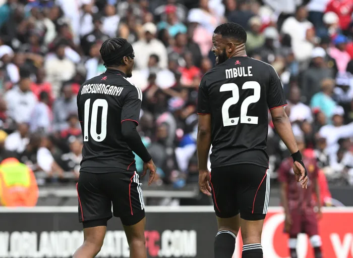 Patrick Maswanganyi and Sipho Mbule of Orlando Pirates.