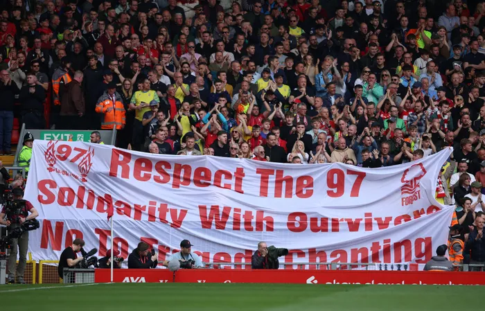 Nottingham Forest fans hold up a banner in memory of the 97 victims of the Hillsborough disaster FILE - Nottingham Forest fans hold up a banner in memory of the 97 victims of the Hillsborough disaster. Photo: Phil Noble/Reuters