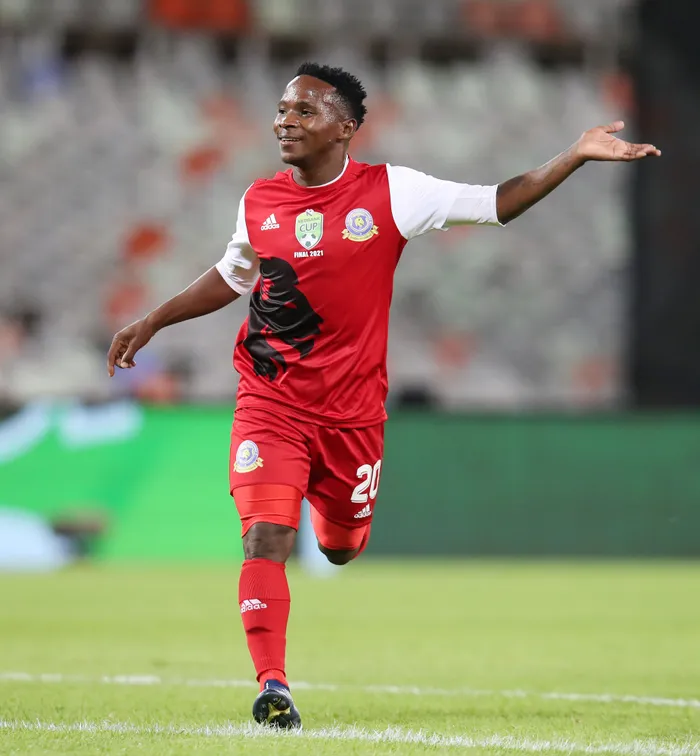 TTM’ sNdabayithethwa Ndlondlo celebrates after scoring in the Nedbank Cup final against Chippa United. Picture: Muzi Ntombela/BackpagePix