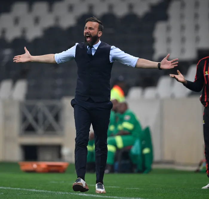 a soccer coach on the sidelines during a match Sead Ramovic, head coach of TS Galaxy FC, is set to be back on the bench for his team’s visit to Kaizer Chiefs in a DStv Premiership match at Soccer City on Wednesday. Picture: Sydney Mahlangu/BackpagePix