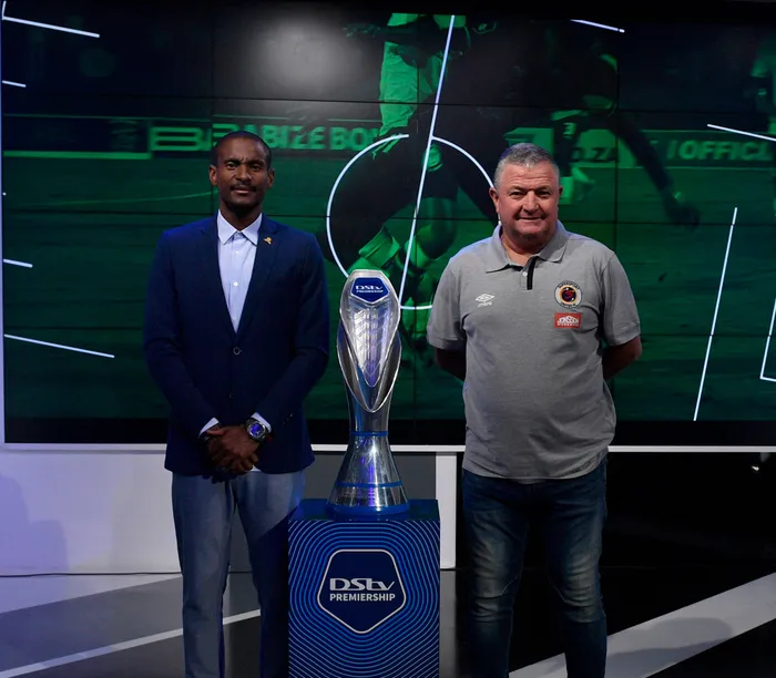 Mamelodi Sundowns’ Rhulani Rulani Mokwena and Gavin Hunt of SuperSport United during a photo opportunity. Mamelodi Sundowns’ Rhulani Rulani Mokwena and Gavin Hunt of SuperSport United go head-to-head in the Tshwane derby. Picture: Sydney Mahlangu / BackpagePix