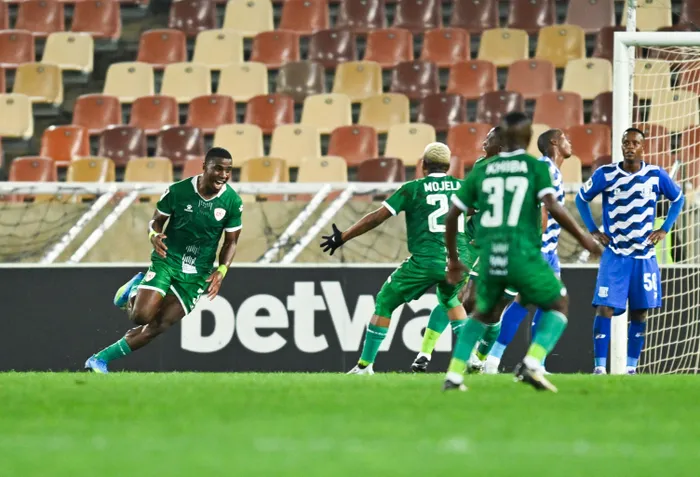 Bright Ndlovu of Sekhukhune United celebrates a goal during the Betway Premiership match against Magesi at Peter Mokaba Stadium in Polokwane on Saturday.