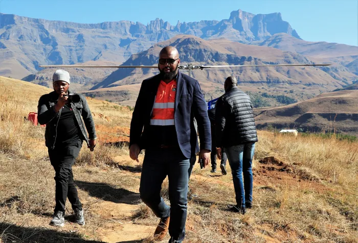 KwaZulu-Natal Department of Economic Development, Tourism and Environmental Affairs MEC Siboniso Duma conducts an oversight visit to monitor the progress of the Drakensberg cable car project. Picture: Supplied