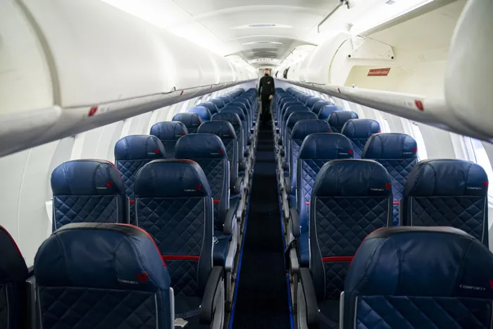 Seats on an airplane at Ronald Reagan National Airport in Arlington, Virginia.
