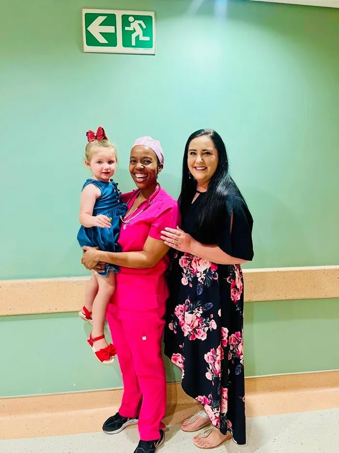 Hannah-Grace and Dr Monyake: Dr Palesa Monyake, paediatric intensivist at Netcare Waterfall City Hospital’s specialised PICU, is pictured with Hannah-Grace Hefer and her mother, Megan.