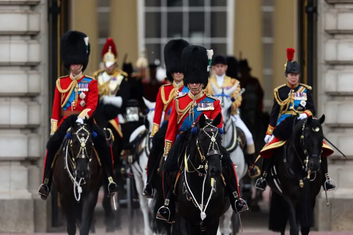 Britain's King Charles III (centre) leads his son William, the Prince of Wales (left), his brother Prince Edward, the Duke of Edinburgh (behind) and his sister, Princess Royal Anne (right) after leaving Buckingham Palace to process to Horse Guards Parade for the King's Birthday Parade (the'Trooping the Colour), in London on June 17, 2023. The ceremony is the first one performed during the reign of King Charles II. Since 1748, the Trooping of the Colour has marked the official birthday of the British Sovereign. More than 1500 parading soldiers and almost 300 horses take part in the event. Picture: Adrian DENNIS / AFP Britain's King Charles III (centre) leads his son William, the Prince of Wales (left), his brother Prince Edward, the Duke of Edinburgh (behind) and his sister, Princess Royal Anne (right) in the King's birthday parade the 'Trooping the Colour’, in London on June 17, 2023. Picture: Adrian DENNIS / AFP