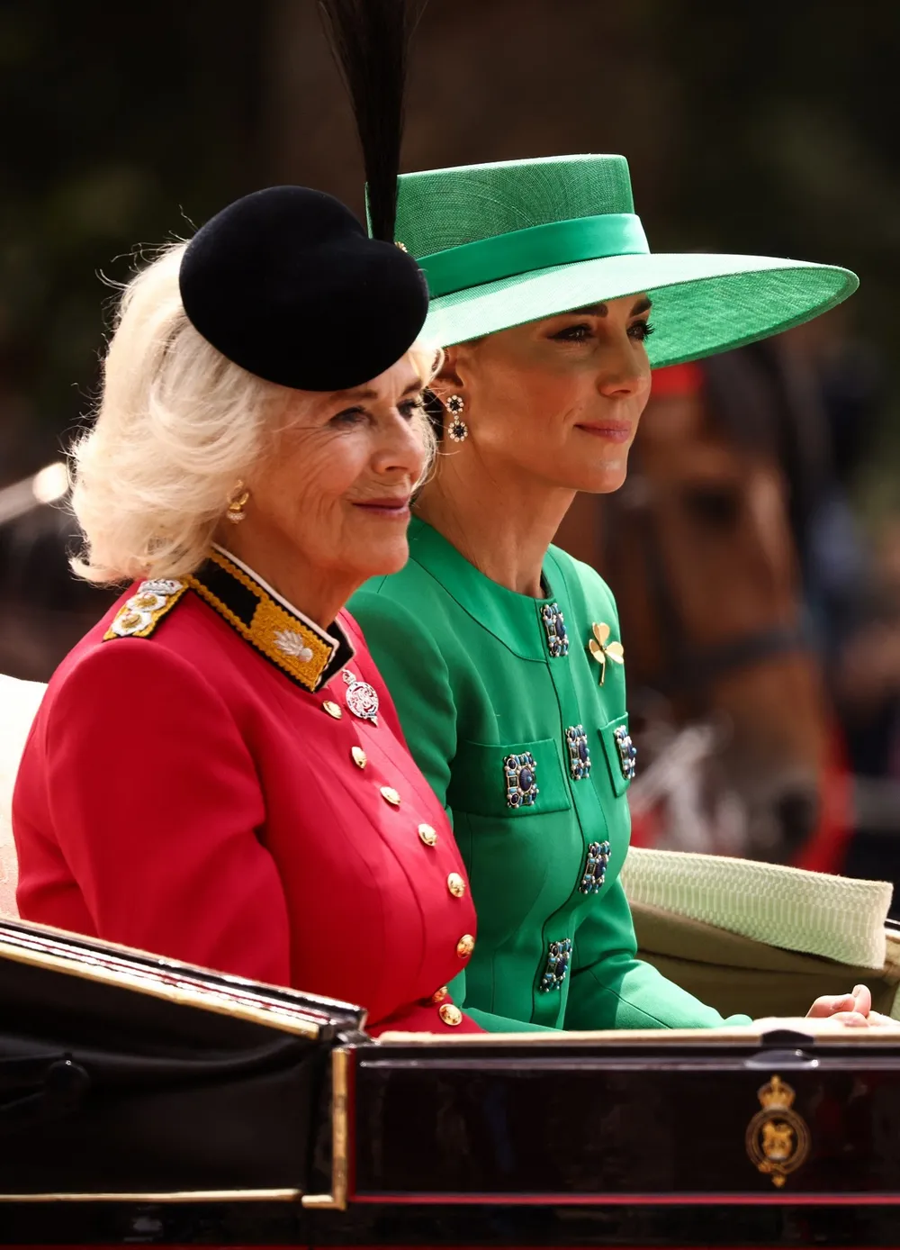 Queen Camilla and the Catherine, Princess of Wales and her children, followed in a carriage.
